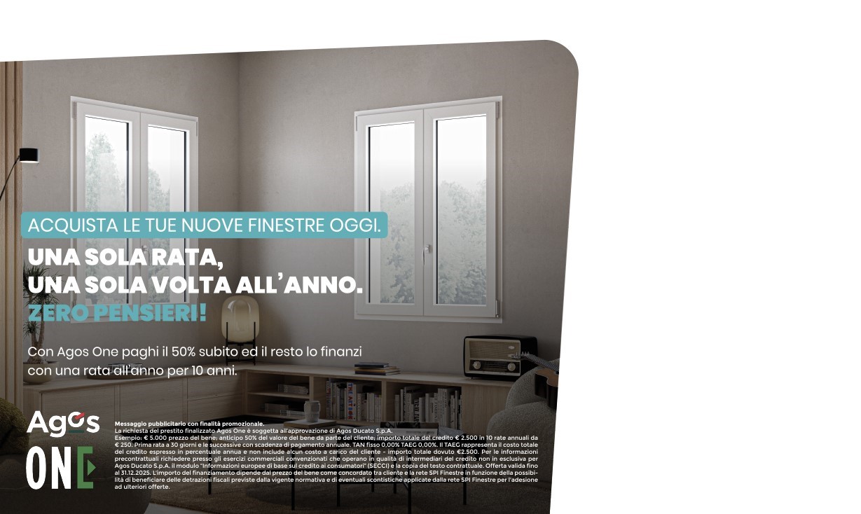Con la formula AGOS ONE paghi il 50% dell'importo totale subito, ed il resto lo finanzi con una rata all'anno per 10 anni!